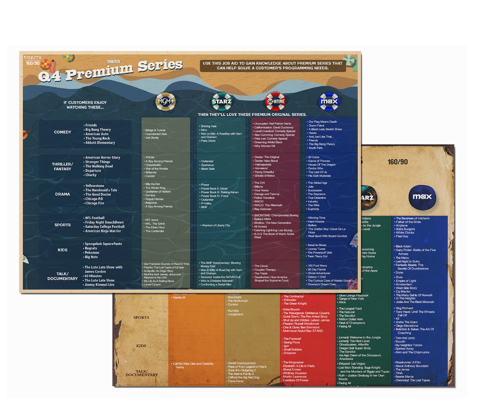 We revamped the global training materials for call center agents, creating annual creative thematics that connected the content for each Premium platform service (MGM+, HBO Max, Showtime, and STARZ) to the design, leaving a lasting impression, improving memorability, and making the information more digestible for agents. The creative was applied across quarterly training decks, job aids, and live learning module videos to ensure consistency and engagement throughout the year